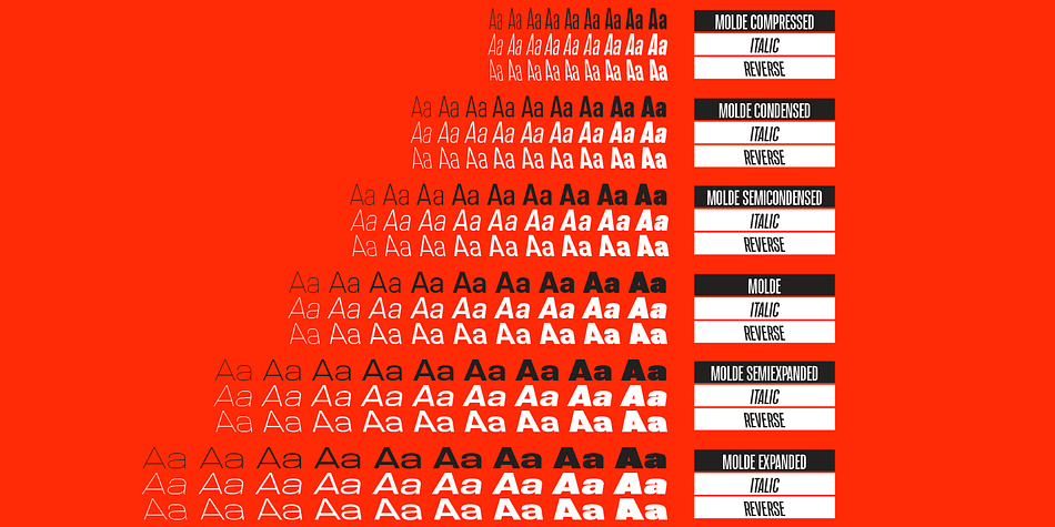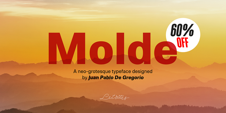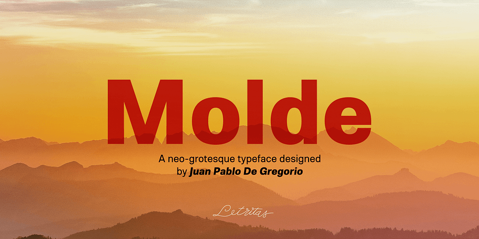 Molde is a sans serif font family. This typeface has one hundred and sixty-two styles and was published by Letritas.
