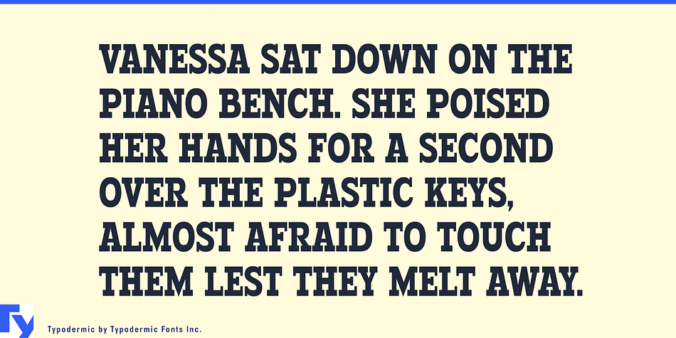 Experience the power and elegance of Typodermic today, and see how its unusual letterforms and heavyset slab serifs can transform your message into a work of art. Whether you’re crafting a brand identity, designing a logo, or simply looking to make a statement, Typodermic is the perfect choice for those who demand nothing but the best.